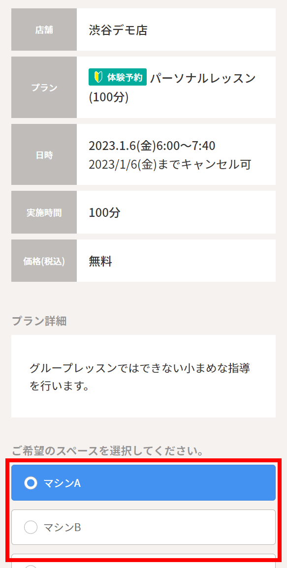 部屋(場所)の選択がある場合はご希望の部屋(場所)を選択してください。